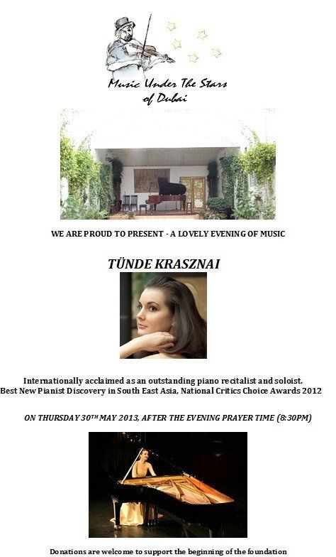 Music Under the Stars of Dubai - Open Air Piano Recital of Tünde-Ilona Krasznai - May 2013