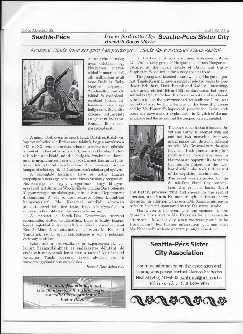 Tünde Krasznai's Steinway Recital in Seattle (USA) - September 2014