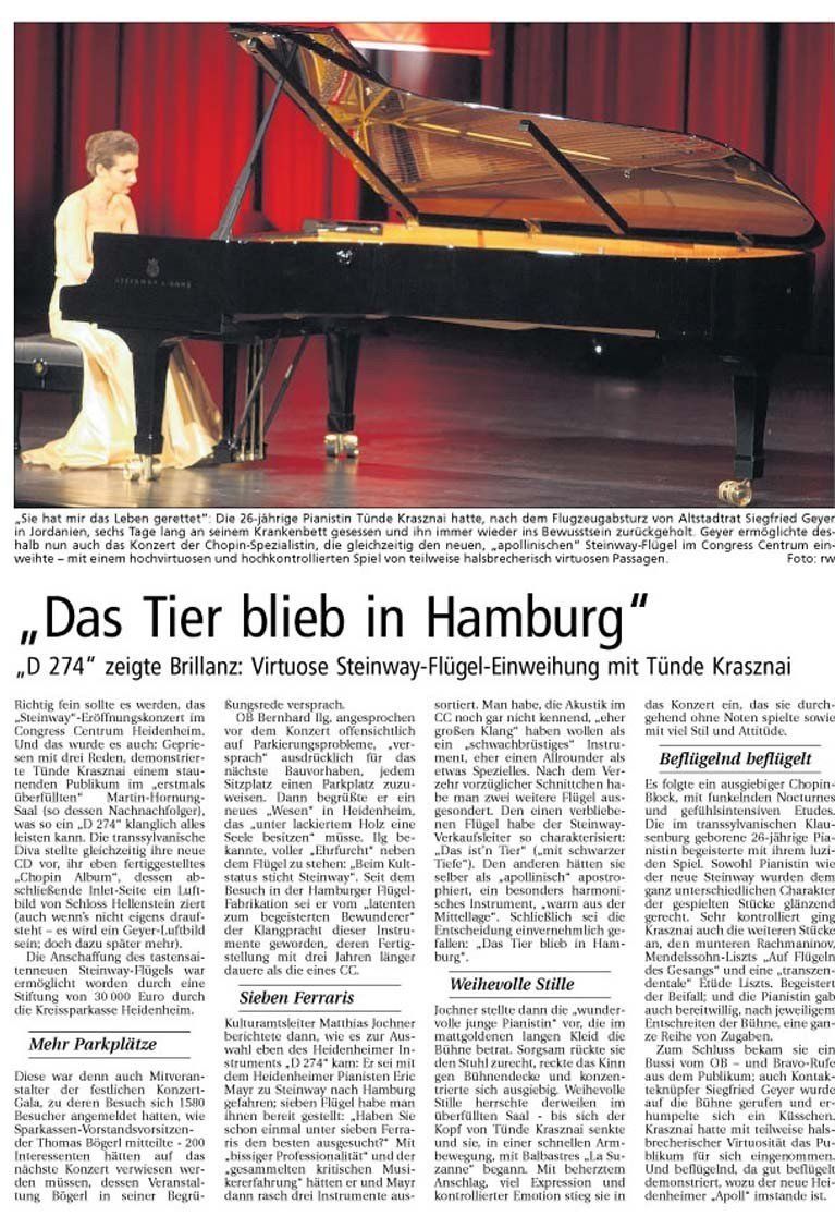 CD Presentation of Tünde Krasznai: Chopin Album and Romantic Bouquet at Congress Center Heidenheim, Germany - November 2009