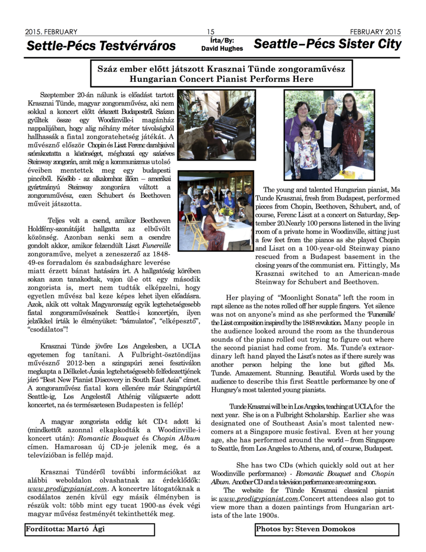 Tünde Krasznai's Steinway Recital in Seattle (USA) - September 2014